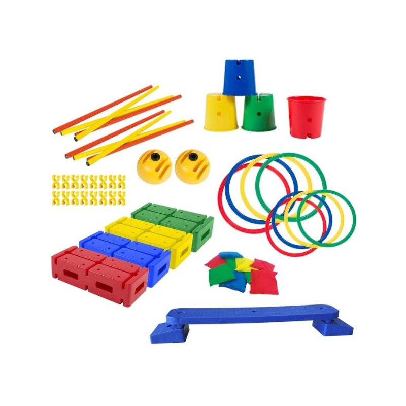 Univerzálna motorická sada určená pre rozvoj základných pohybových zručností detí – balansovanie, skákanie, prechádzanie, hádzanie aj presnosť pohybu. Vďaka svojej variabilite umožňuje ľahko vytvárať prekážkové dráhy vo vnútri aj vonku. Je ideálny pre materské školy, školské družiny, pohybové krúžky alebo domáce použitie.